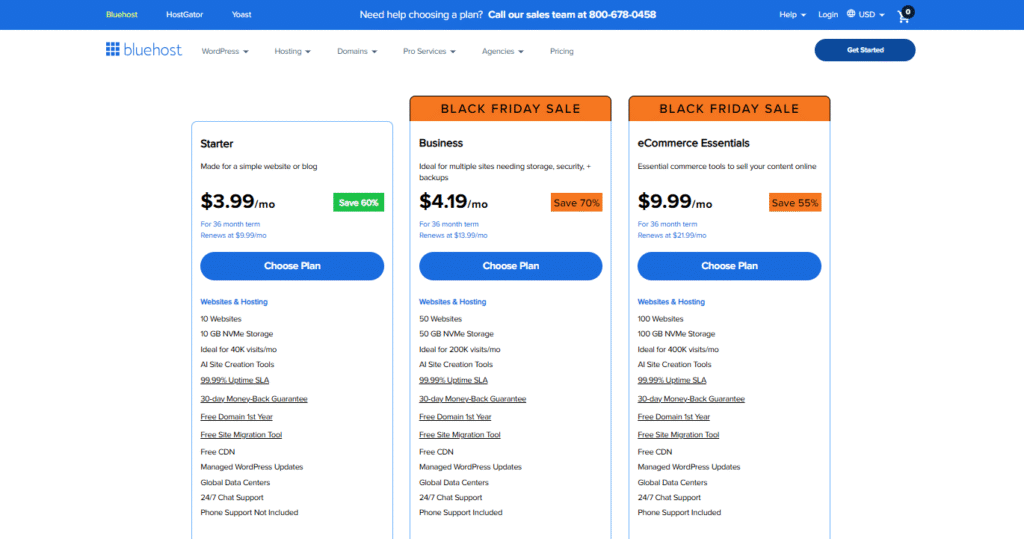 Bluehost officially recommended by wordpress cms. If you make a wordpress blog website then choose Bluehost plan. This starting price is $3.99/month.