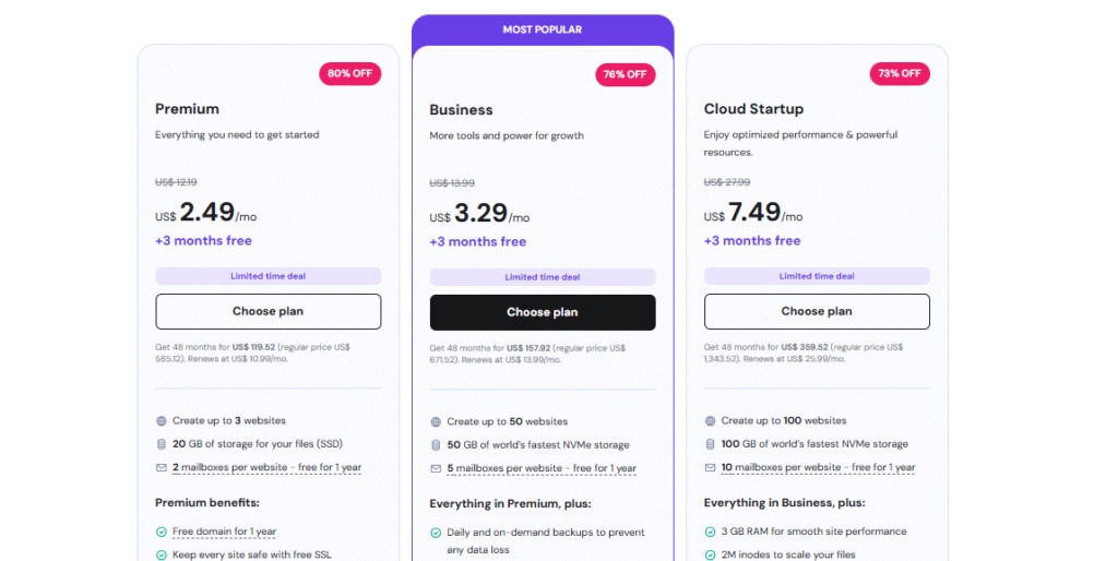 Note: If you’re starting your first blog or brand website, Hostinger offers excellent hosting plans with free domains, SSL, and 24/7 support Only 2.99$/month— perfect for beginners.